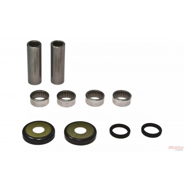 kit features all of the needle bearings, pins, seals, caps, collars and bushings your ride requires for a smooth traveling swingarm