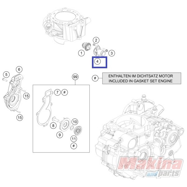 Genuine thermostat cover KTM Duke 690 '08-'19, Enduro 690 '08-20, SMC 690 '08-'20.